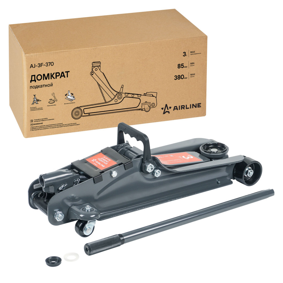 домкрат AIRLINE подкатной 3т низкопрофильный (MIN - 85 мм, MAX - 380 мм) AJ-3F-370