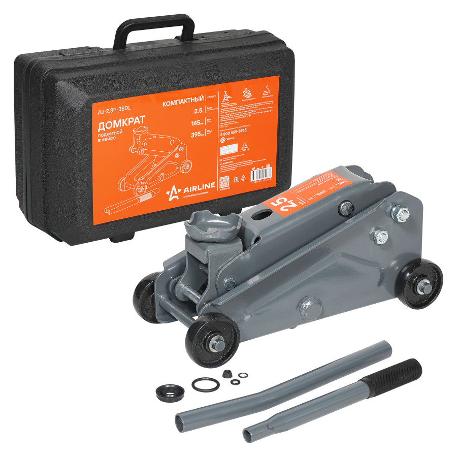домкрат AIRLINE подкатной гидравлический 2.5т компактный в кейсе (367мм*165мм*165мм MIN - 145 мм, MAX - 395 мм) AJ-2.3F-380L