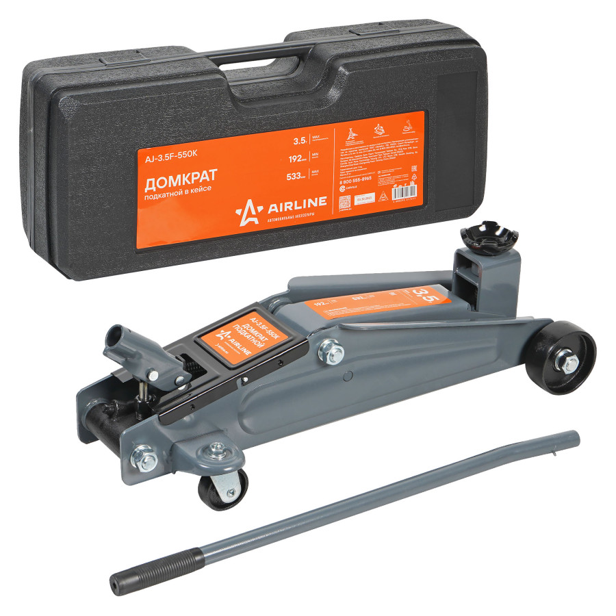 домкрат AIRLINE подкатной гидравлический 3.5т в кейсе (MIN - 192 мм, MAX - 533 мм) AJ-3.5F-550K
