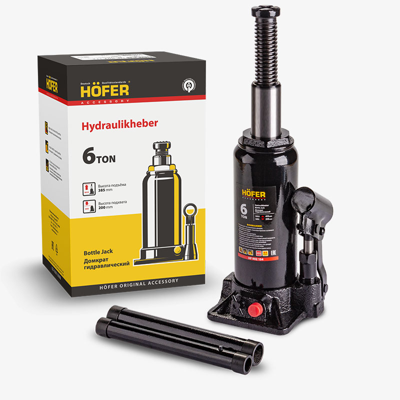 домкрат HOFER бутылочный с увел. высотой 6т (215мм-415мм) HF 902 154
