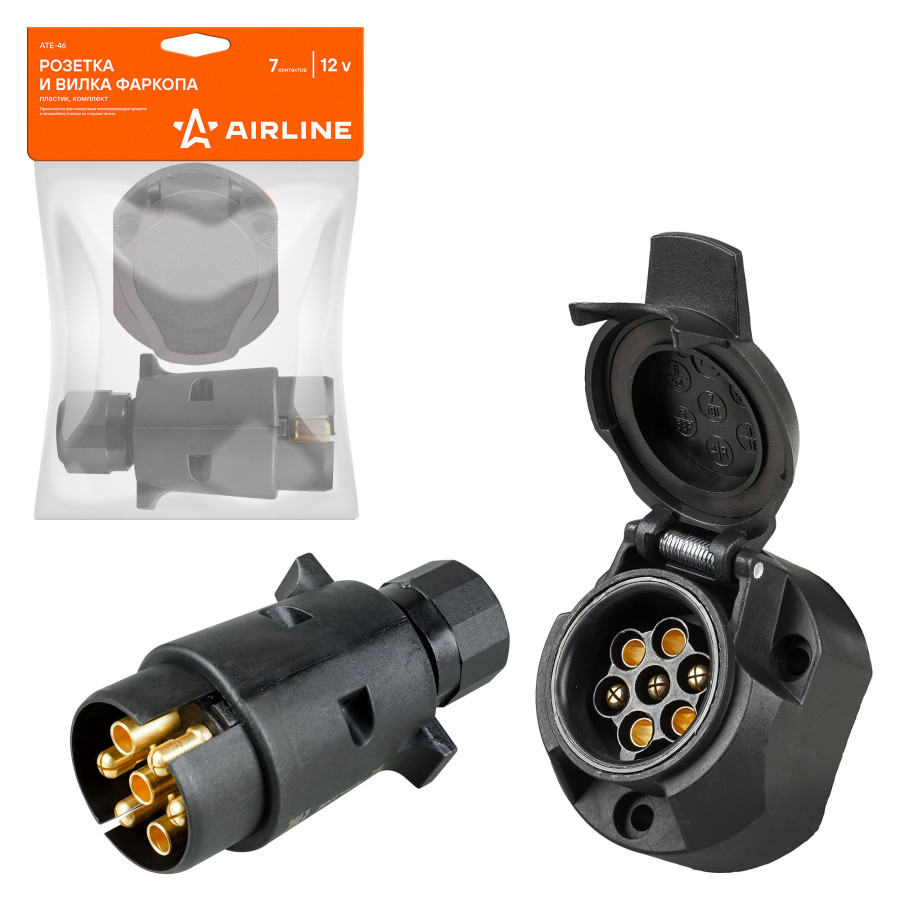 розетка и вилка фаркопа AIRLINE 12В 7 контактов пластик комплект (вилка с гайкой) ATE-46