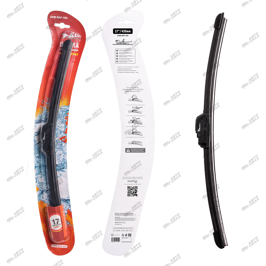 щетка с/о AIRLINE бескаркасная 430мм (17"), 1 адаптер (hook 9x3) AWB-BKP-430