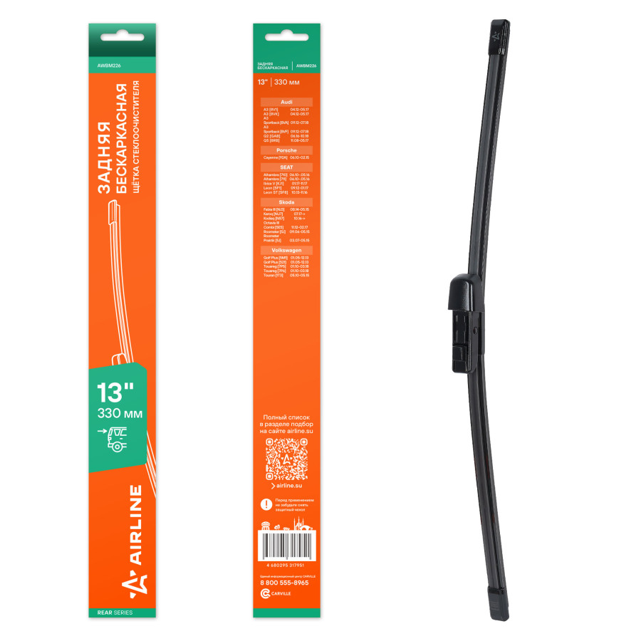 щетка с/о AIRLINE задняя бескаркас 330мм (13") для а/м Skoda/VW/Audi/Porsche AWBM226