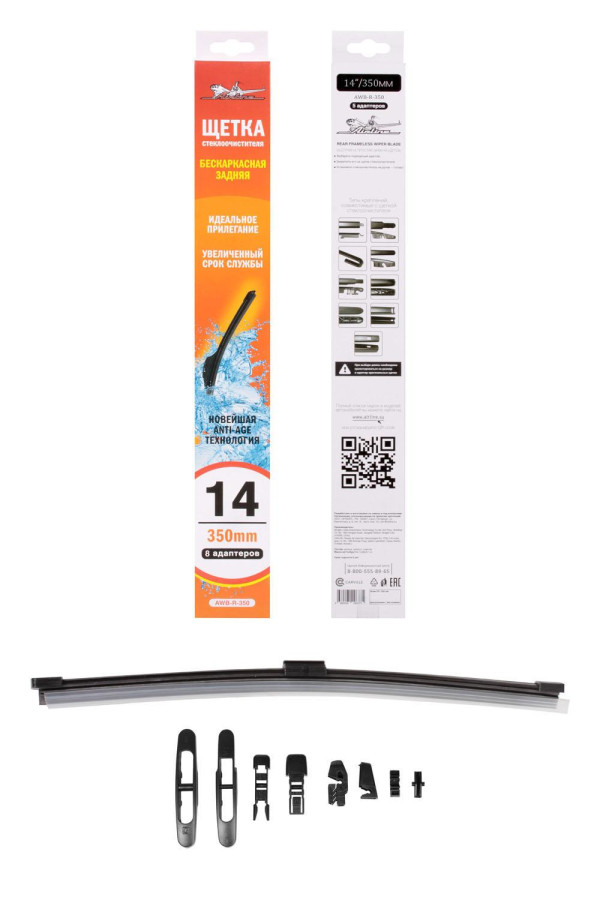 щетка с/о AIRLINE задняя бескаркас 350мм (14") 8 адаптеров (AWB-R-350)