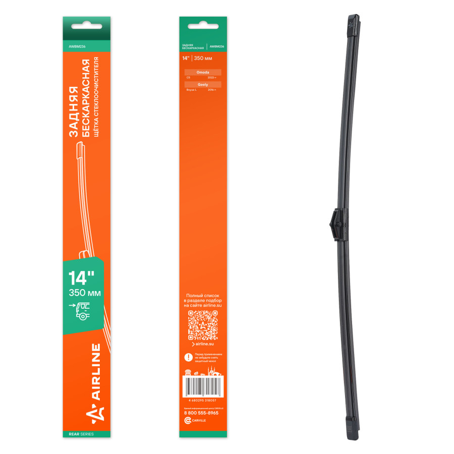 щетка с/о AIRLINE задняя бескаркас 350мм (14") для а/м Omoda C5 (22-)/Geely Boyue L (16-) AWBM236