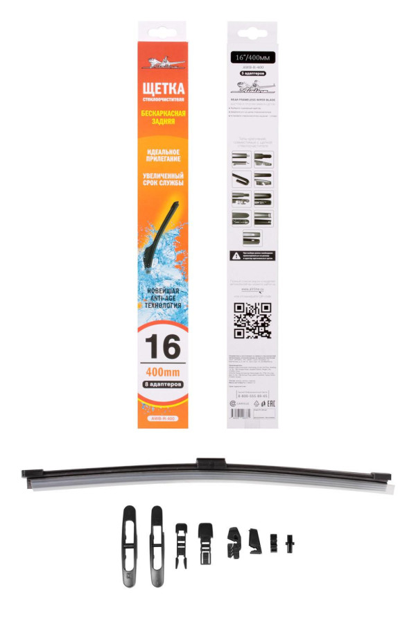щетка с/о AIRLINE задняя бескаркас 400мм (16") 8 адаптеров (AWB-R-400)