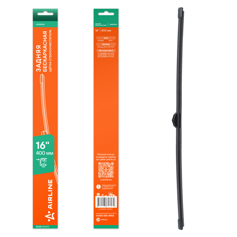 щетка с/о AIRLINE задняя бескаркас 400мм (16") для а/м Mercedes V-Class, Vito W447 (14-) AWBM244