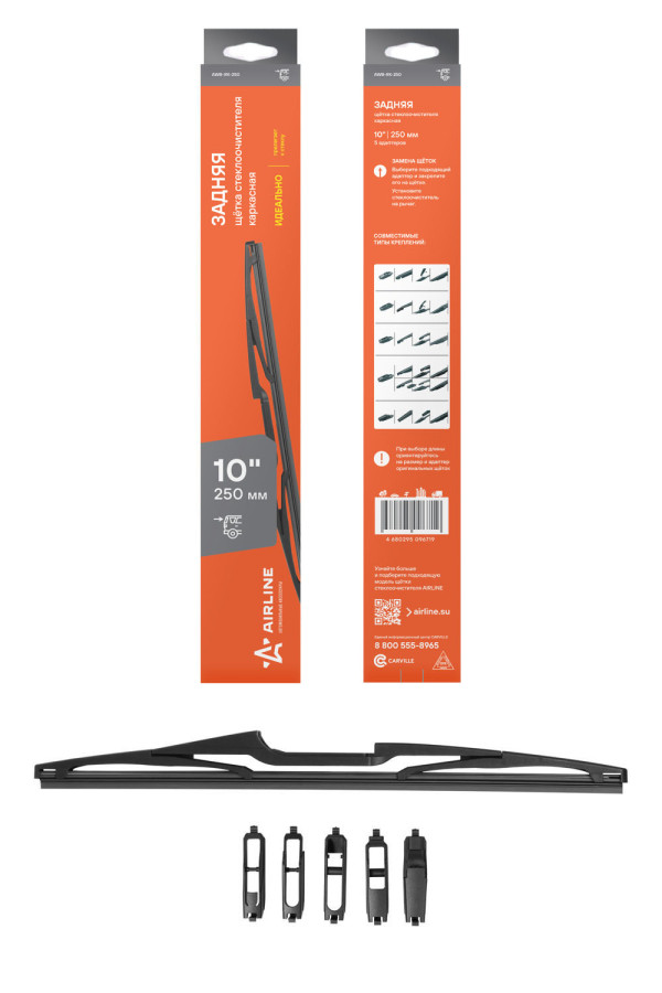 щетка с/о AIRLINE задняя каркас 250мм (10") 5 адаптеров (AWB-RK-250)