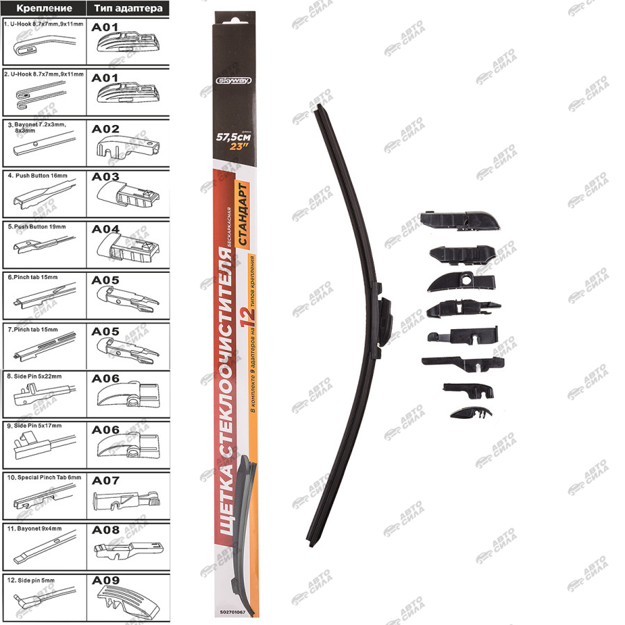 щетка с/о SKYWAY бескаркасная СТАНДАРТ 9 адаптеров 58см/23" S02701067