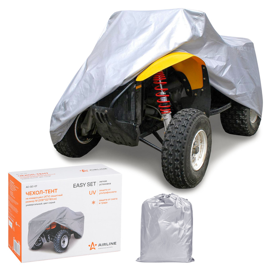 Чехол-тент на квадроцикл AIRLINE защитный, разм. М (208*122*80см), серый, универсальн. AC-QC-07