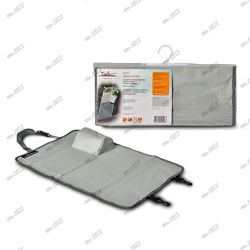 С текстильным органайзером можно не беспокоиться о состоянии обивки автомобиля. Изделие изготовлено из практичного материала, который легко переносит стирку. В органайзере предусмотрена удобная система крепления, благодаря чему он будет надежно держаться на спинке сиденья. Крепежные элементы изготовлены из морозоустойчивого пластика.