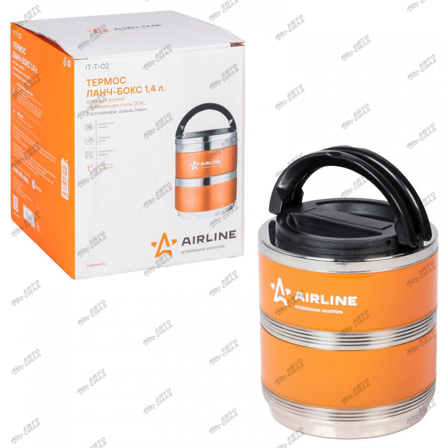 термос AIRLINE ланч-бокс для еды с ручкой, нерж. сталь 2 контейнера, 1,4 л., оранж./черн. IT-T-02