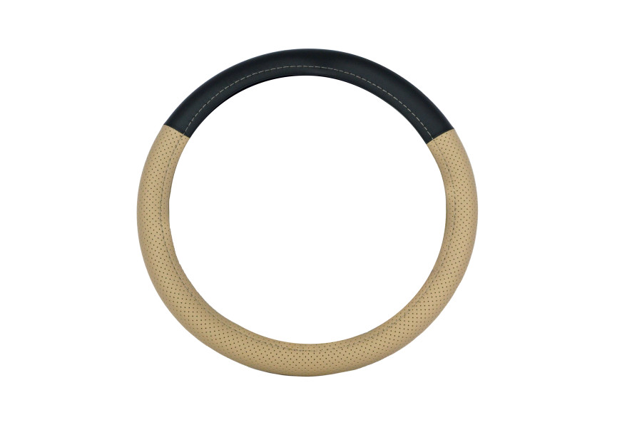 оплетка CARPETELLI на руль M кожа Classic (черная кожа гладкая 30%, перфорация бежевая 70%, бежевая нить) арт. CA023-СPBgBg