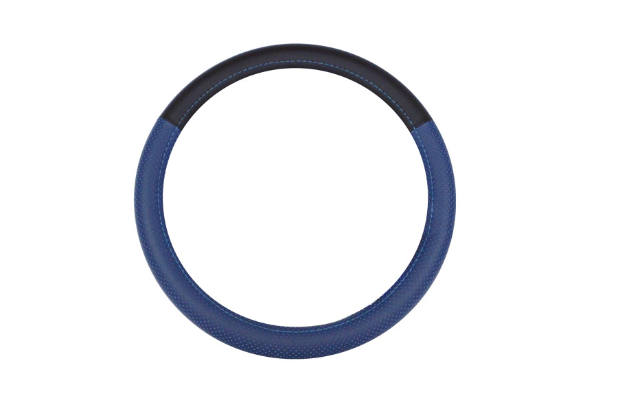 оплетка CARPETELLI на руль M кожа Classic (черная кожа гладкая 30%, перфорация синяя 70%, синяя нить) арт. CA023-СPBlBl