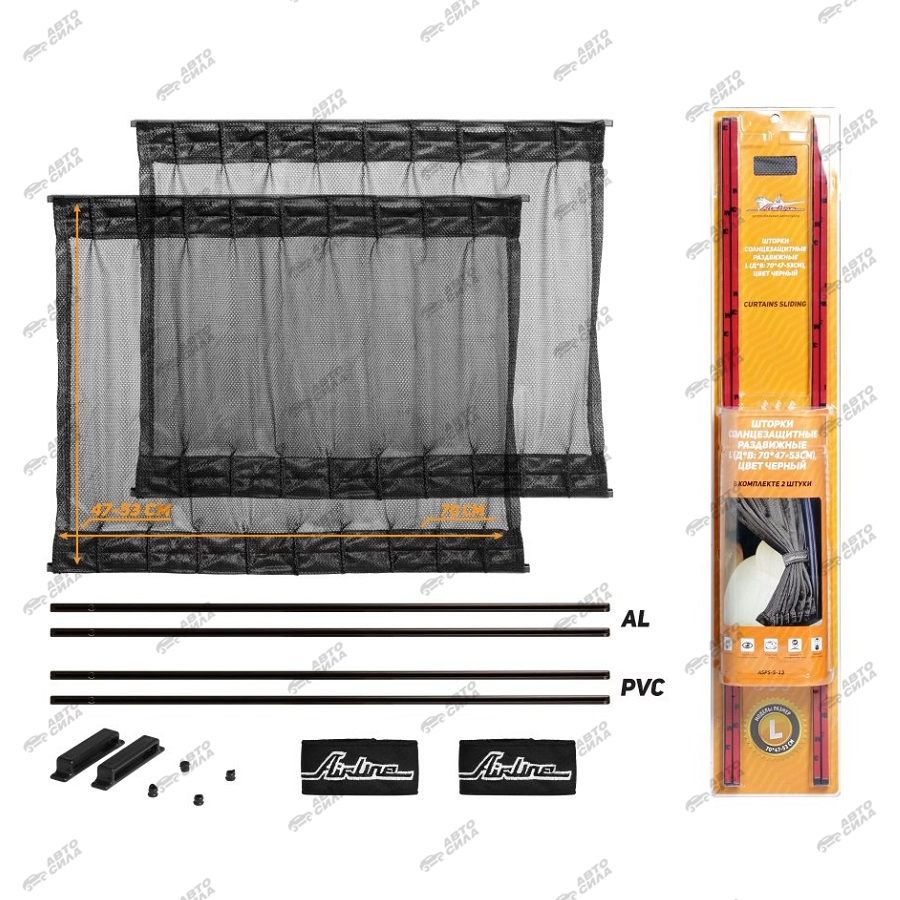 Шторки солнцезащитные раздвижные AIRLINE L (Д*В: 70*47-53см), черные ASPS-S-13