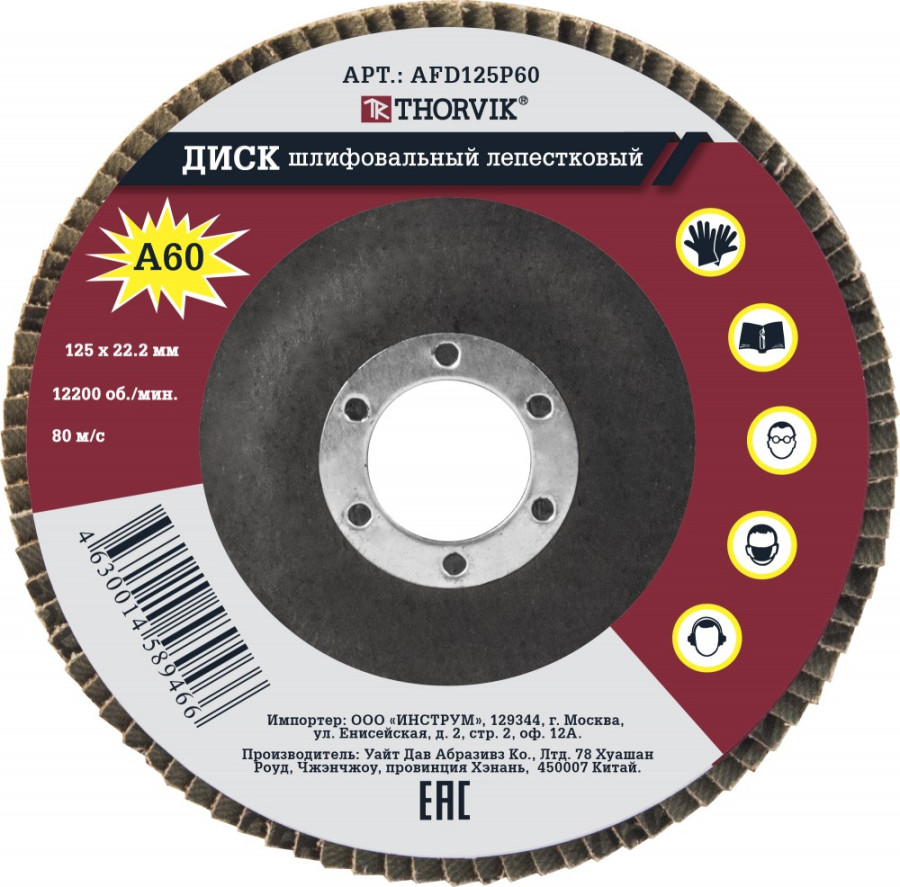 диск шлифовальный лепестковый торцевой THORVIK 125х22.2 мм, Р60 арт.AFD125P60