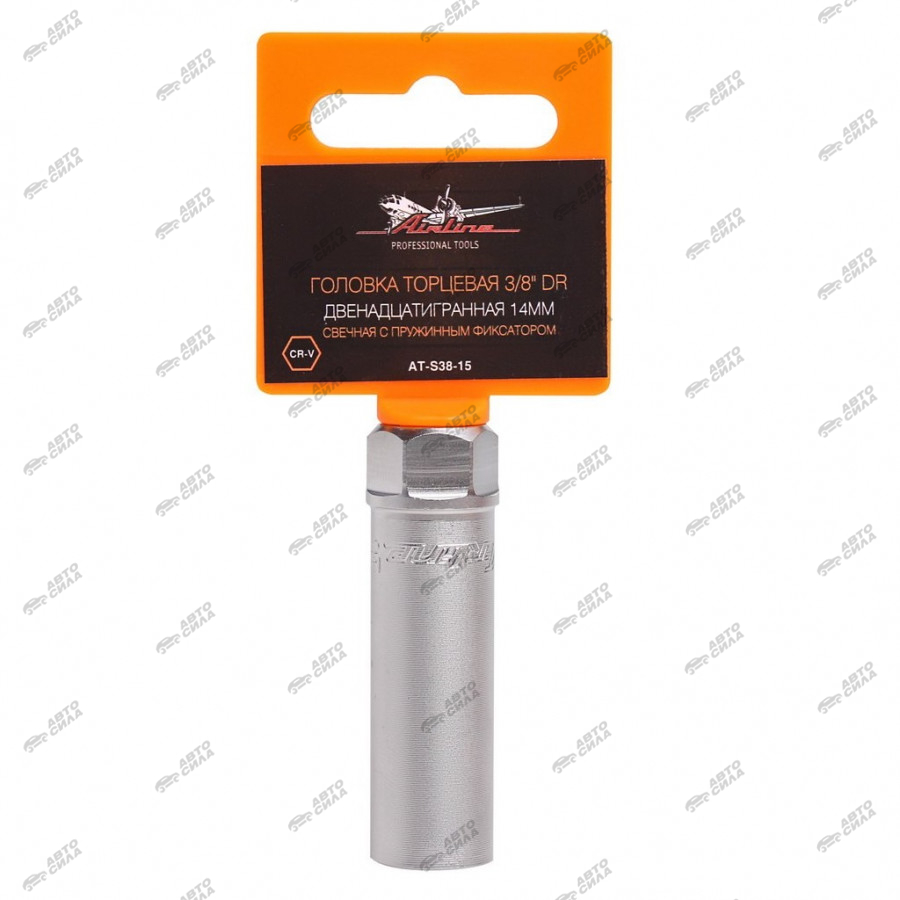 головка AIRLINE торцевая свечная с пружинным фиксатором 3/8" DR 14 мм, 12 гранная AT-S38-15