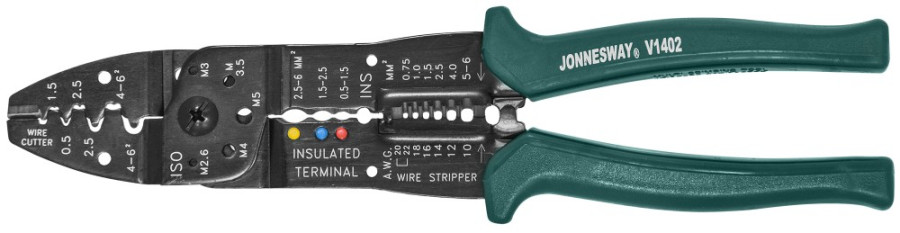 клещи многофункциональные JonnesWay для снятия изоляции и обжима наконечников 250 мм арт.V1402