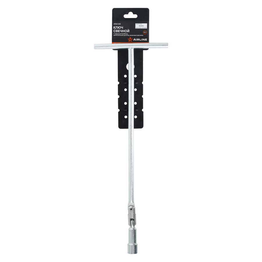 ключ свечной AIRLINE Т-образный 16мм, 350мм INDUSTRY металл.рукоятка, резиновый фиксатор ATAC035