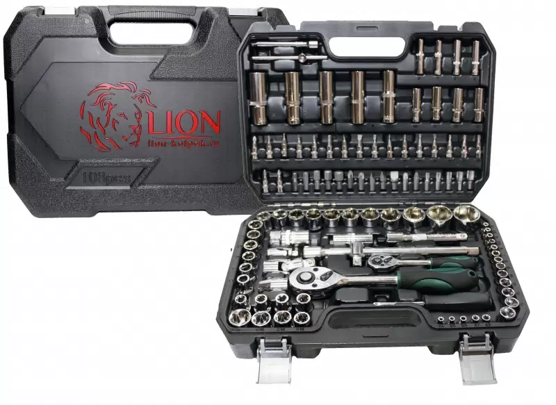 набор инстр. LION TOOLS CR-V универсальный 108 предметов 6 гран. 1/4", 1/2"DR в кейсе арт.108-CR-V