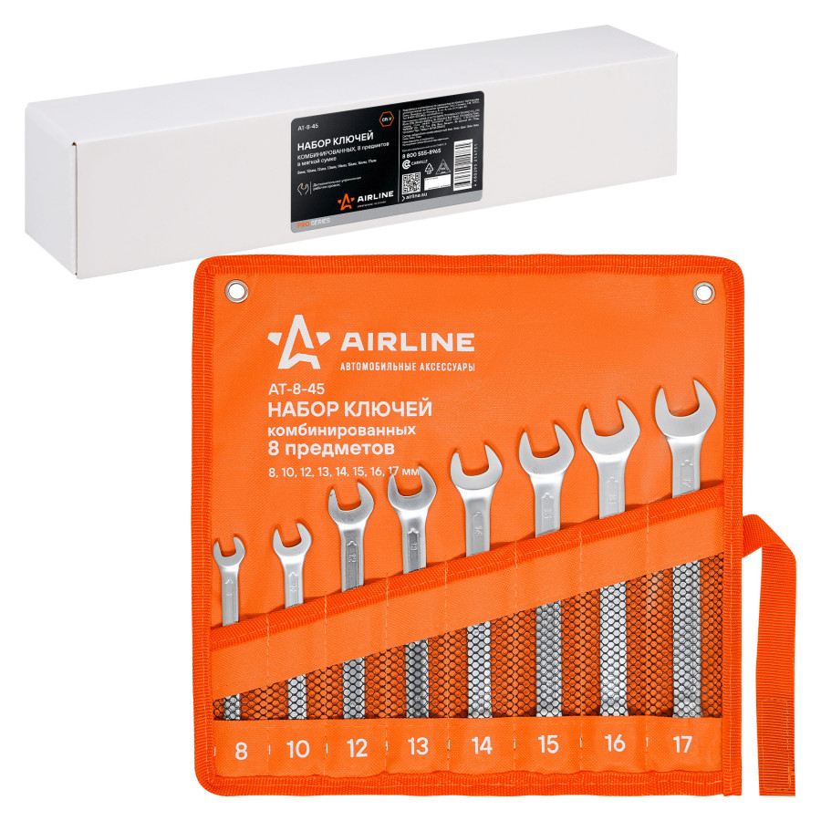 набор ключей AIRLINE комбинир. 8 предм. (8,10,12,13,14,15,16,17мм) сумка PRO AT-8-45