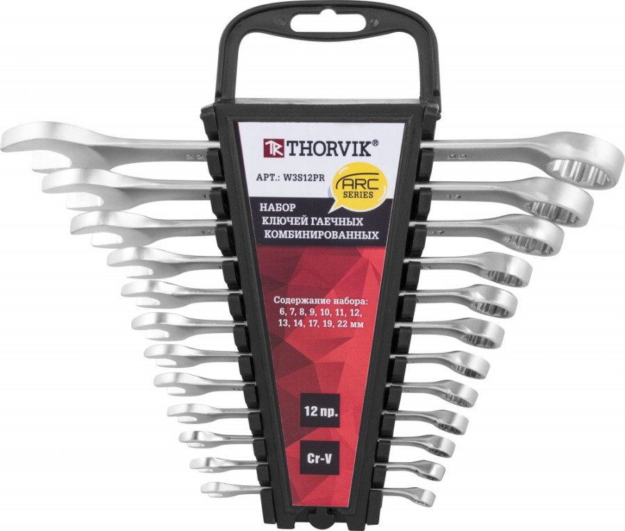 набор ключей THORVIK комбинированных 12 предм. (6,7,8,9,10,11,12,13,14,17,19,22мм) серии ARC на держателе арт.W3S12PR