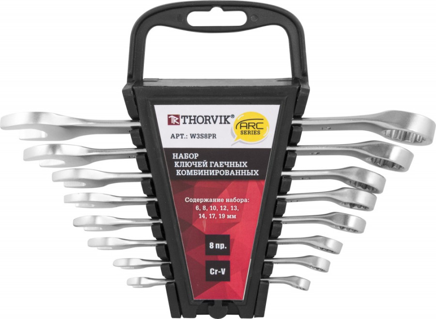 набор ключей THORVIK комбинированных 8 предм. (6,8,10,12,13,14,17,19мм) серии ARC на держателе арт.W3S8PR