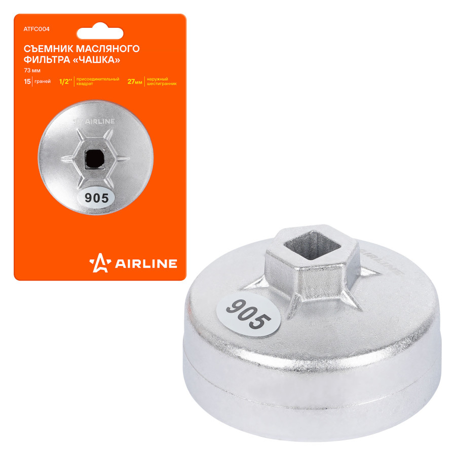 съемник масляного фильтра AIRLINE "Чашка" 73мм, 15 граней ATFC004