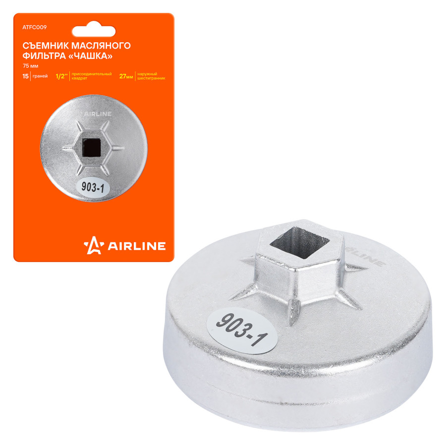 съемник масляного фильтра AIRLINE "Чашка" 75мм, 15 граней ATFC009