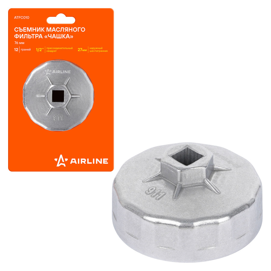 съемник масляного фильтра AIRLINE "Чашка" 76мм, 12 граней ATFC010