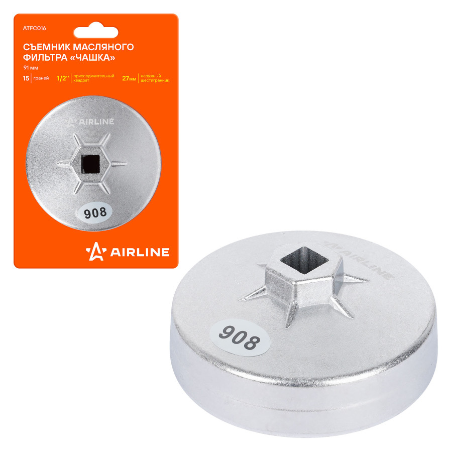 съемник масляного фильтра AIRLINE "Чашка" 91мм, 15 граней ATFC016