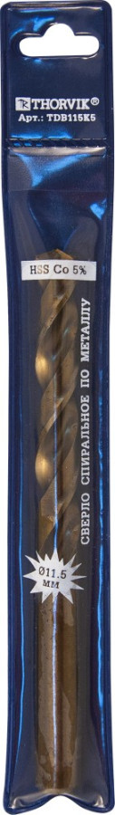 сверло спиральное по металлу THORVIK HSS Co d12.5 мм в ПВХ упаковке арт.TDB125K5