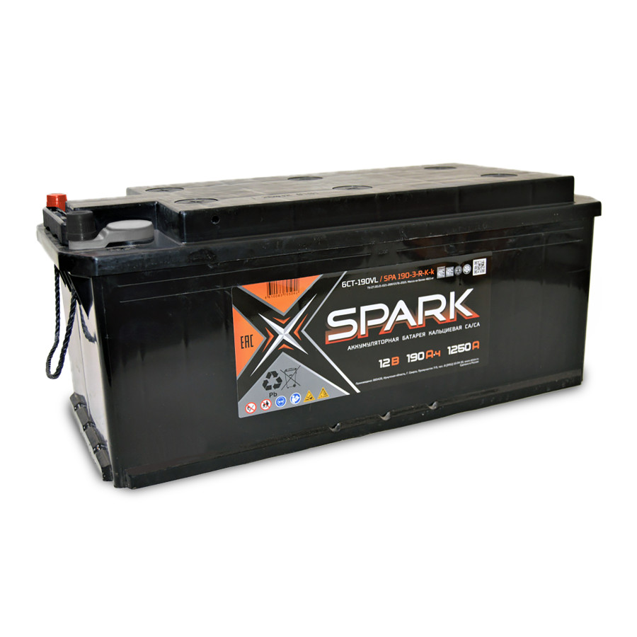 аккумулятор SPARK 190 А/ч 1250A обр. п. (514х218х210) (клемма конус) 6СТ-190 NЗ (SPA 190-3-R-K-k) 6СТ-190 NЗ (R)