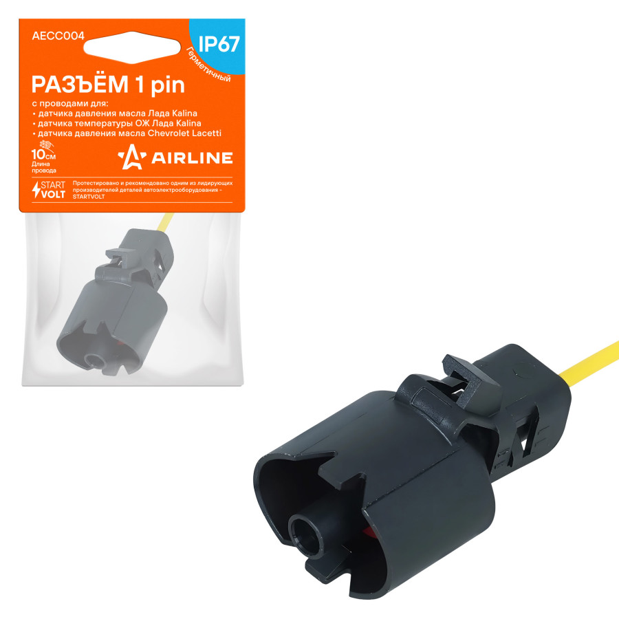 колодка соединительная AIRLINE 1 pin с проводами для датчика давл. масла, темп. ОЖ Лада; датчика давл. масла Chevrolet AECC004