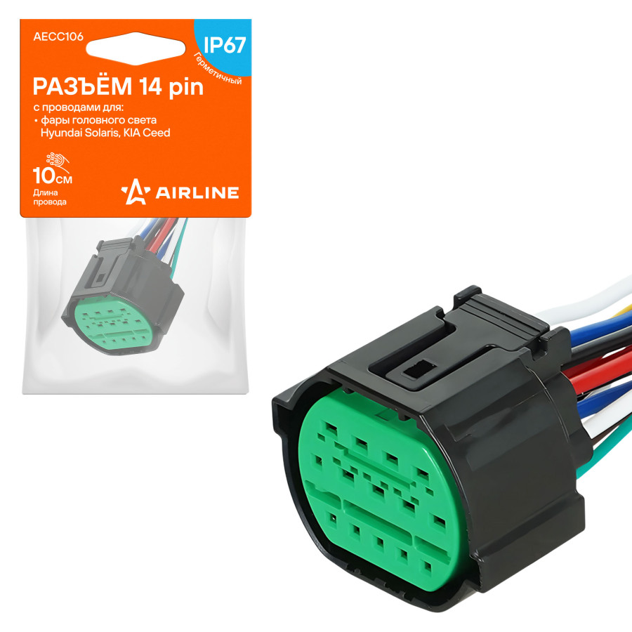 колодка соединительная AIRLINE 14 pin с проводами для фары головного света Hyundai Solaris, KIA Ceed AECC106