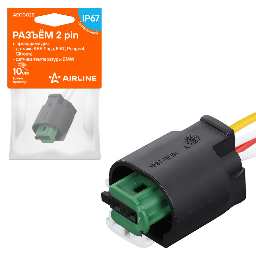 колодка соединительная AIRLINE 2 pin с проводами для датчика ABS Лада, FIAT, Peugeot, Citroen; для датчика темп. BMW AECC022