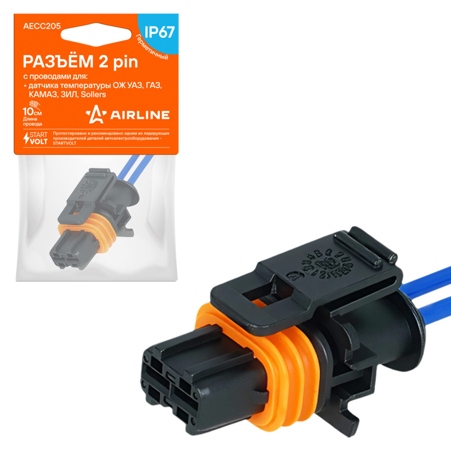 колодка соединительная AIRLINE 2 pin с проводами для датчика темп. ОЖ УАЗ, ГАЗ, КАМАЗ, ЗИЛ, Sollers AECC205