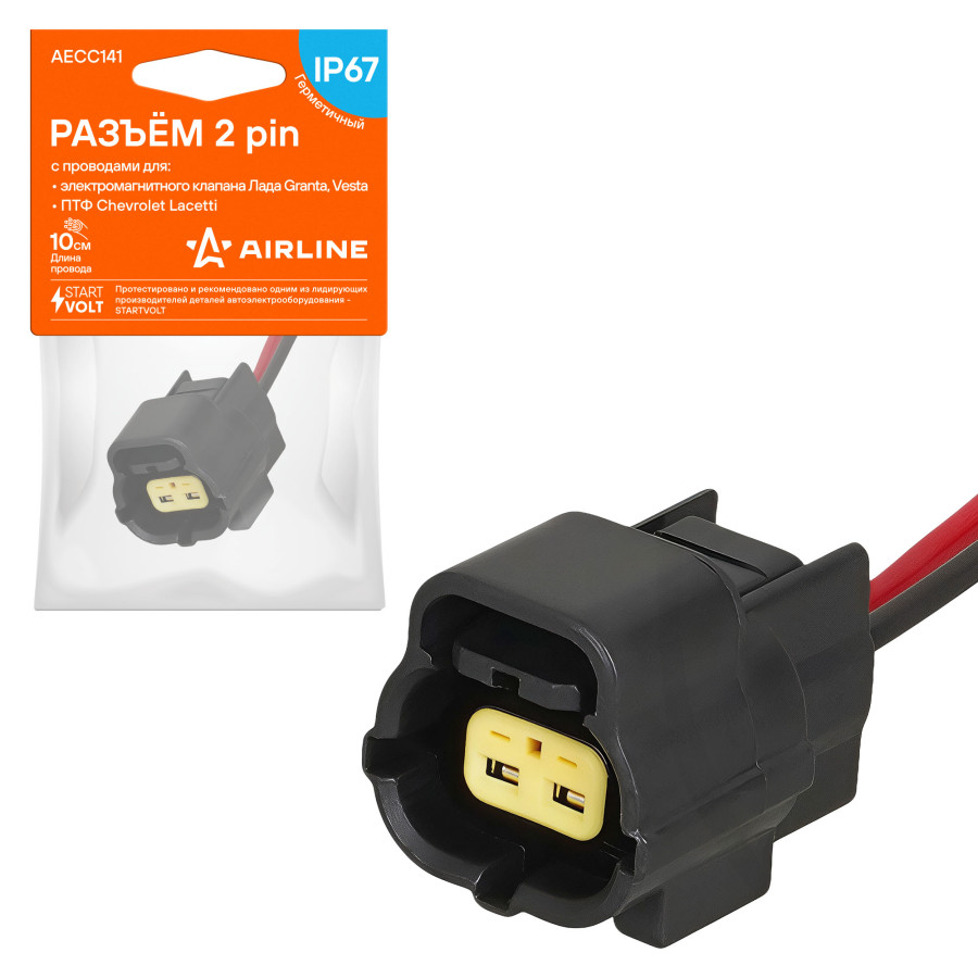 колодка соединительная AIRLINE 2 pin с проводами для э/магн.клапана Лада Granta/Vesta; для ПТФ Chevrolet Lacetti AECC141