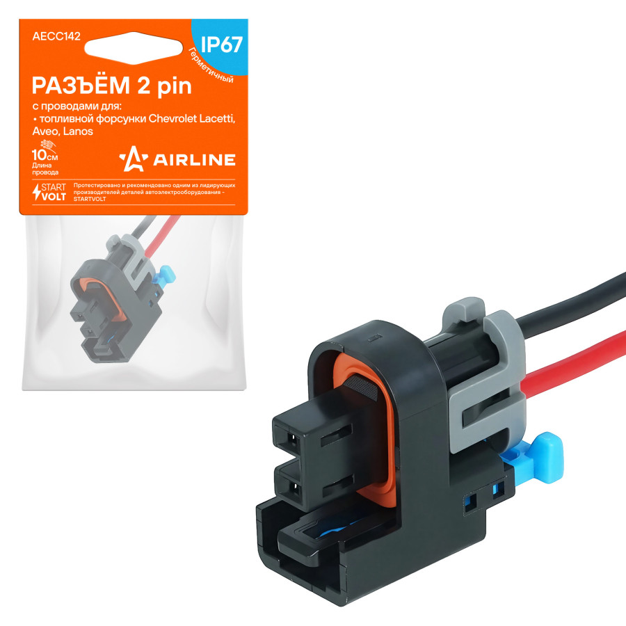 колодка соединительная AIRLINE 2 pin с проводами для топливной форсунки Chevrolet Lacetti, Aveo, Lanos AECC142