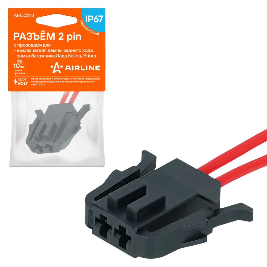 колодка соединительная AIRLINE 2 pin с проводами для выключателя лампы заднего хода, замка багажника Лада Kalina, Priora AECC213