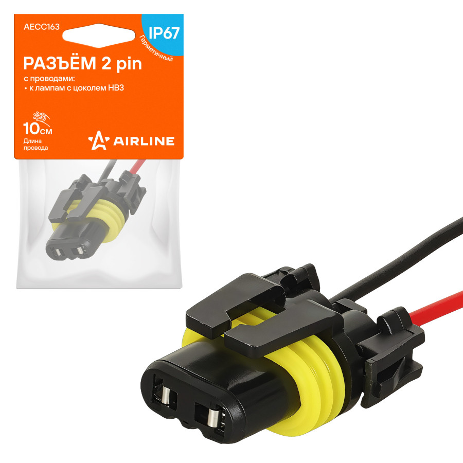 колодка соединительная AIRLINE 2 pin с проводами к лампам с цоколем HB3 AECC163