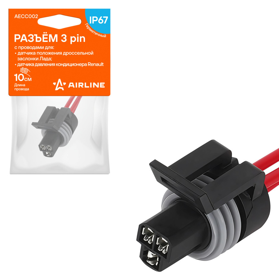 колодка соединительная AIRLINE 3 pin с проводами для датчика пол. дросс. заслон. Лада; для дат. давл. кондиц. Renault AECC002