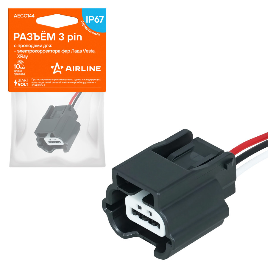 колодка соединительная AIRLINE 3 pin с проводами для электрокорректора фар Лада Vesta, XRay AECC144