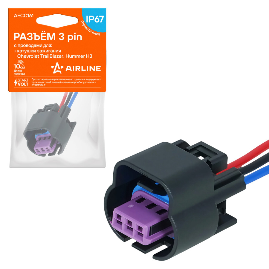 колодка соединительная AIRLINE 3 pin с проводами для катушки зажигания Chevrolet TrailBlazer, Hummer H3 AECC161
