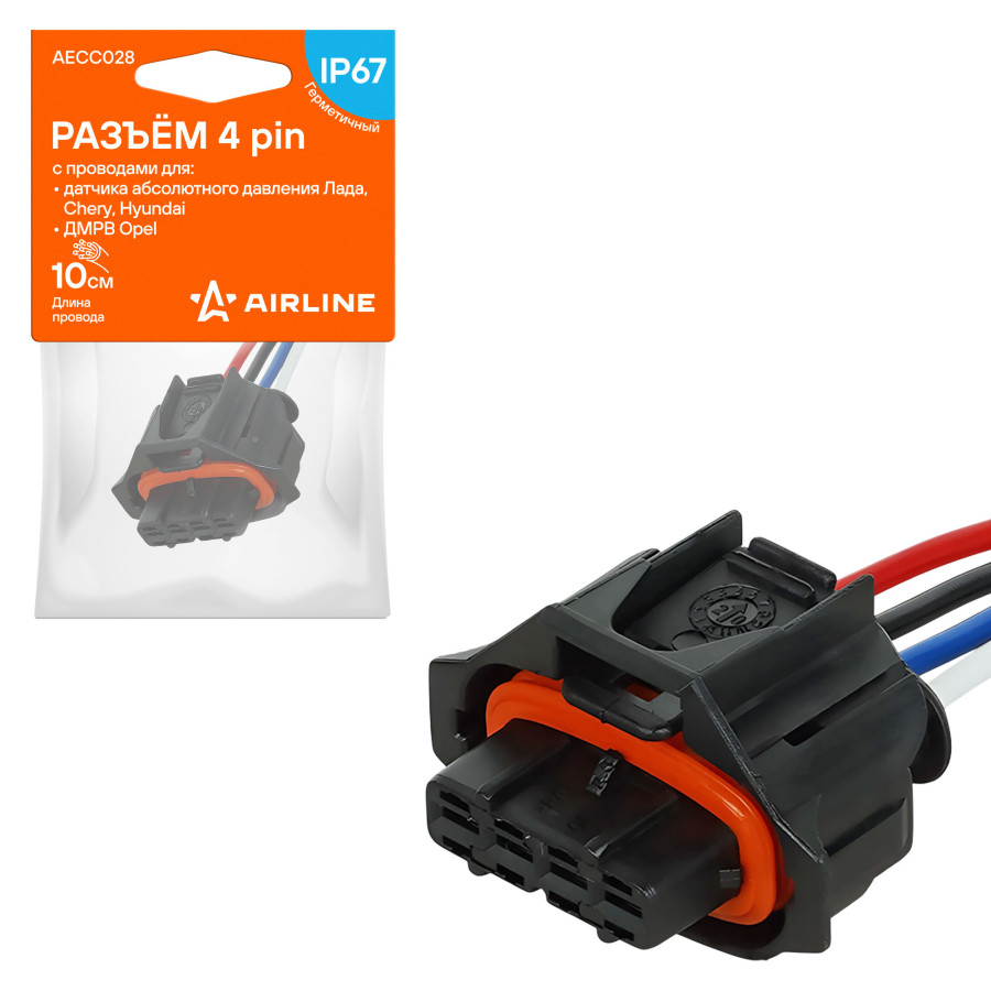колодка соединительная AIRLINE 4 pin с проводами для датчика абсолют. давления Лада, Chery, Hyundai; для ДМрВ Opel AECC028