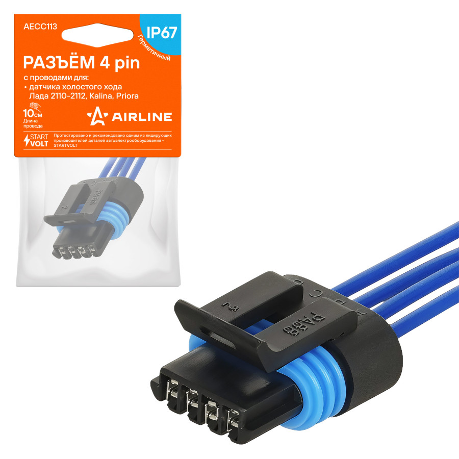 колодка соединительная AIRLINE 4 pin с проводами для датчика холостого хода Лада 2110-2112, Kalina, Priora AECC113