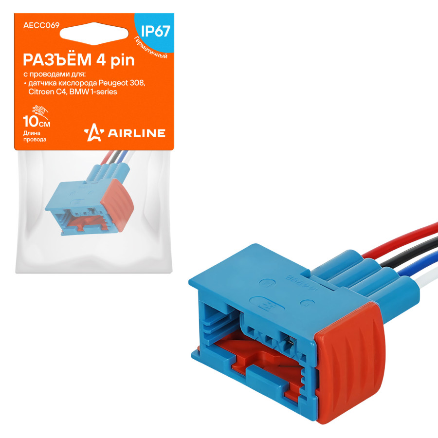 колодка соединительная AIRLINE 4 pin с проводами для датчика кислорода Peugeot, Citroen, BMW AECC069