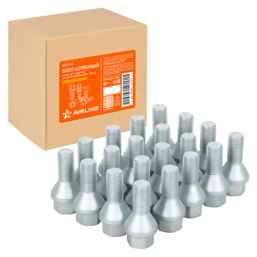болт колесный AIRLINE M12x1,5x22x47, конус, кл.17, дакромет для а/м Suzuki/Opel/Fiat ABLT003