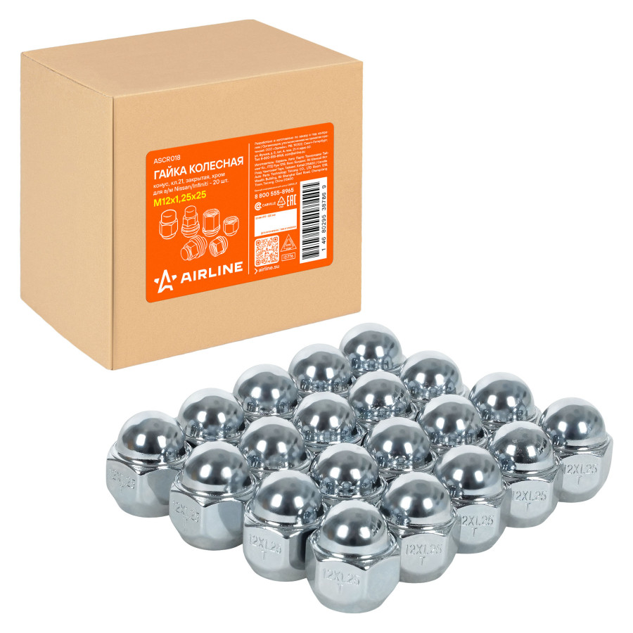 гайка колесная AIRLINE M12x1,25x25, конус, кл.21, закрытая, хром для а/м Nissan/Infiniti ASCR018