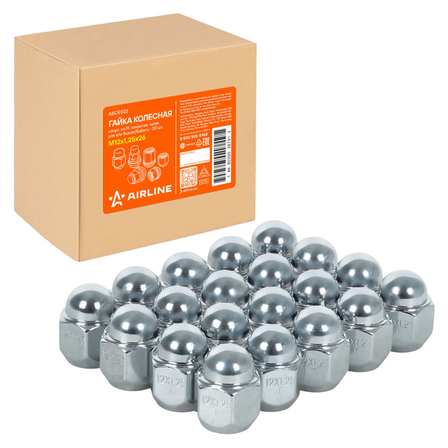 гайка колесная AIRLINE M12x1,25x26, конус, кл.19, закрытая, хром для а/м Suzuki/Subaru ASCR023